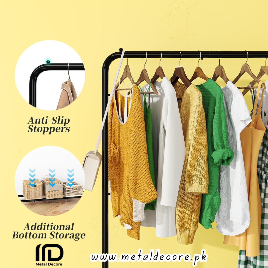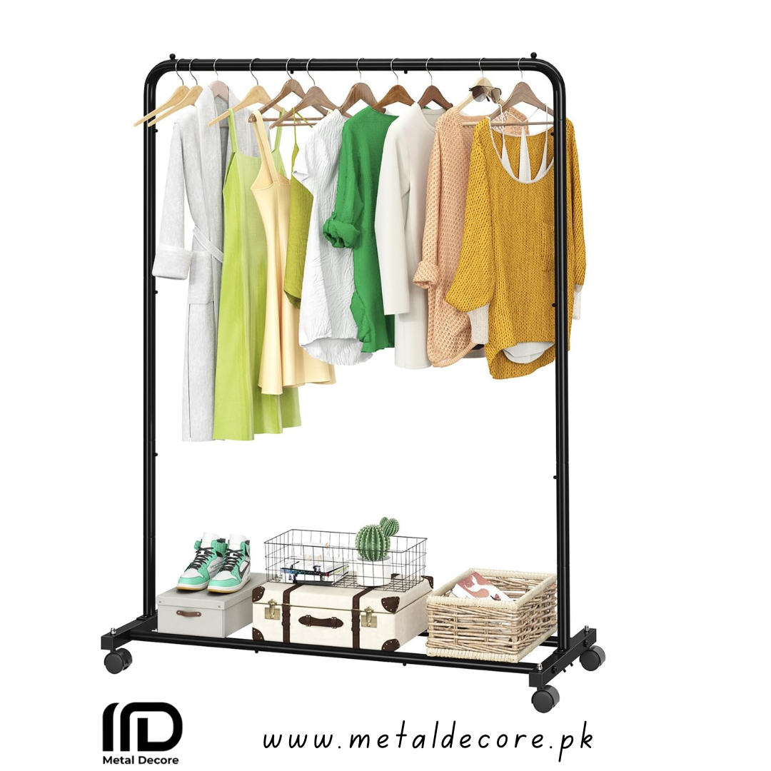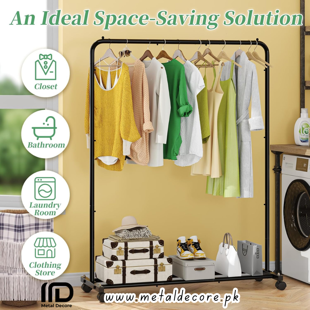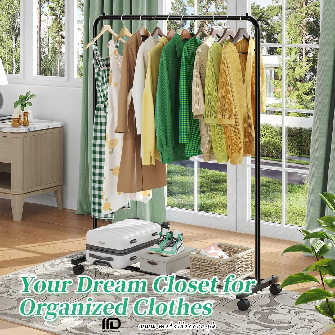 Let your style hang freely with Metal Decore’s Rolling Garment Rack — where utility meets design.